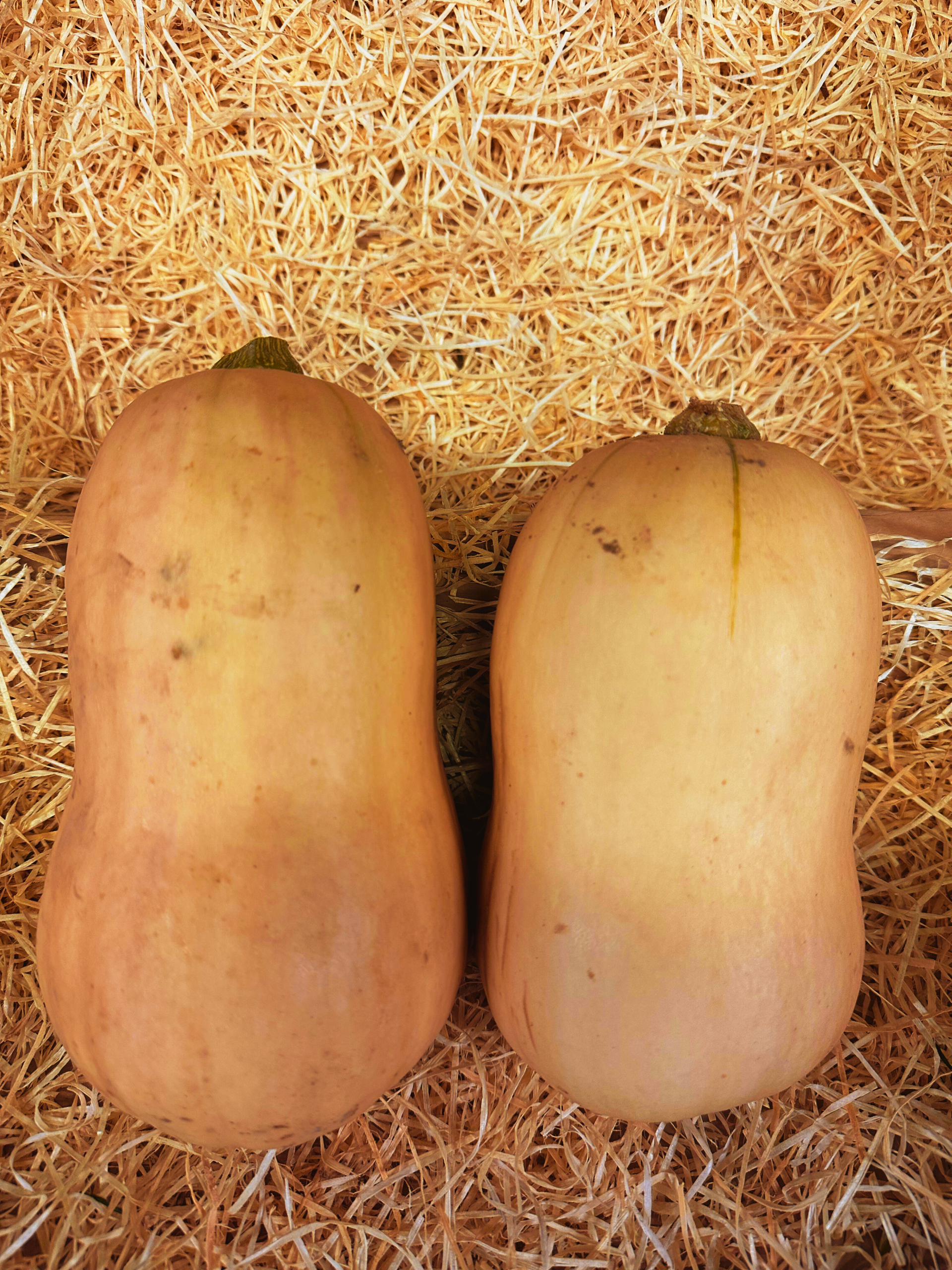 la courge butternut est un fruit qui ressemble, par ses jolies courbes, à une poire allongée. Sa chair est orange, sa peau plutôt beige et dure (bien que peu épaisse !)